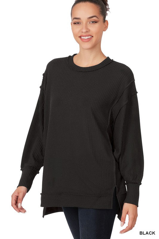 Brushed Waffle Oversized Exposed-Seam Sweater