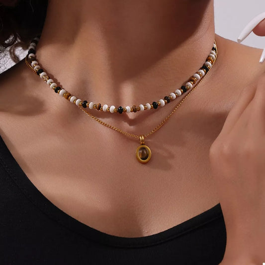 2 Piece Natural Stone and Gold Chain Necklace with Pendant