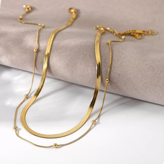 2-Piece 18K Gold-Plated Necklace with Zircon Accents