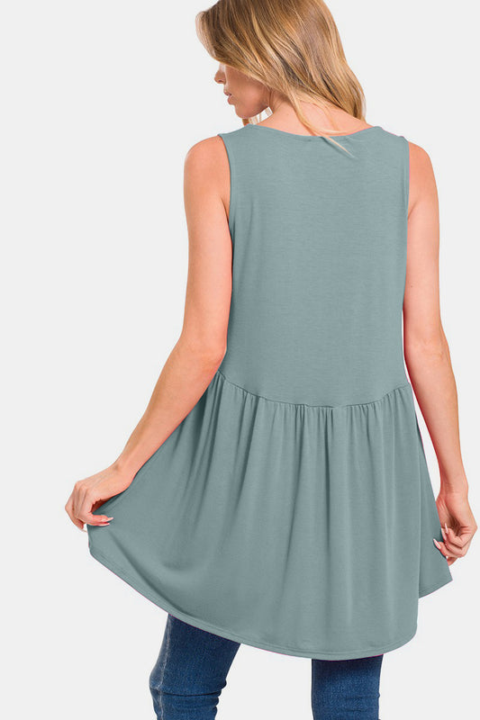Zenana Round Neck Wide Strap Babydoll Top