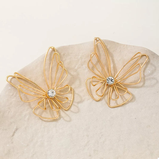 18K Gold-Plated Butterfly Flower Statement Earrings