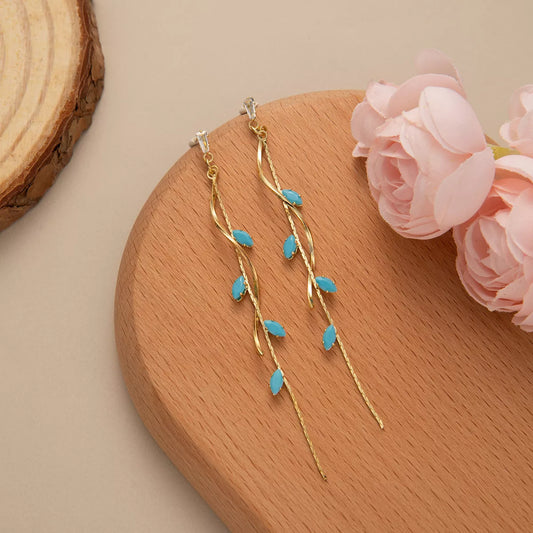 18K Gold-Plated Alloy Resin Leaf Drop Earrings