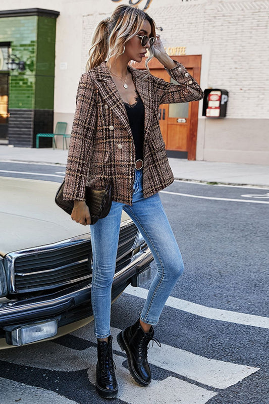 Regular price $49.20 USDRegular priceUnit price / per$49.20 USDSale price $49.20 USDFull Size Plaid Buttoned Blazer