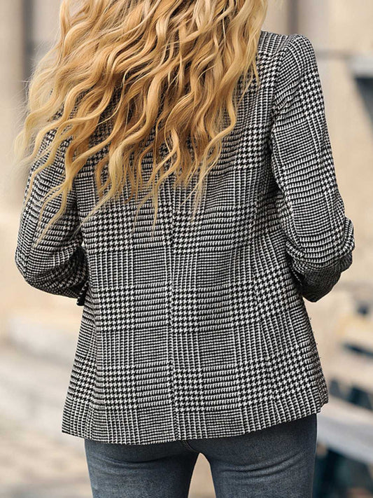 Houndstooth Lapel Collar Long Sleeve Blazer