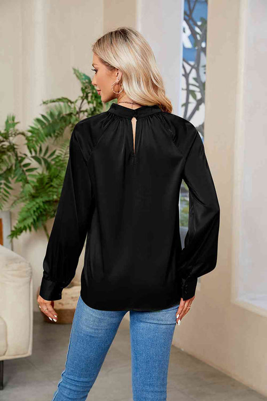 Texture Ruff Sleeve Mock Neck Blouse