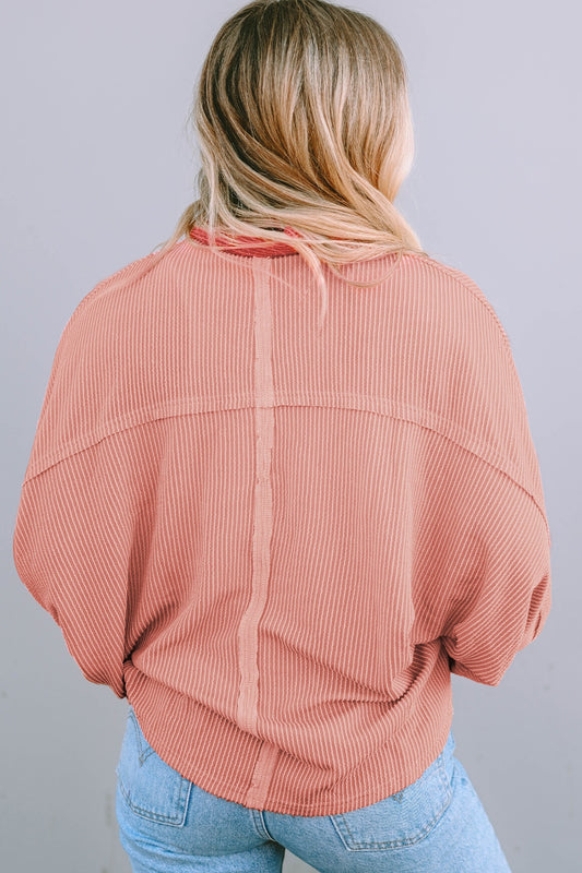 Ribbed Round Neck Lantern Sleeve Knit Top