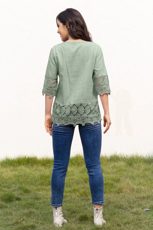 Regular price $35.40 USDRegular priceUnit price / per$35.40 USDSale price $35.40 USDTie Neck Lace Detail Half Sleeve Blouse