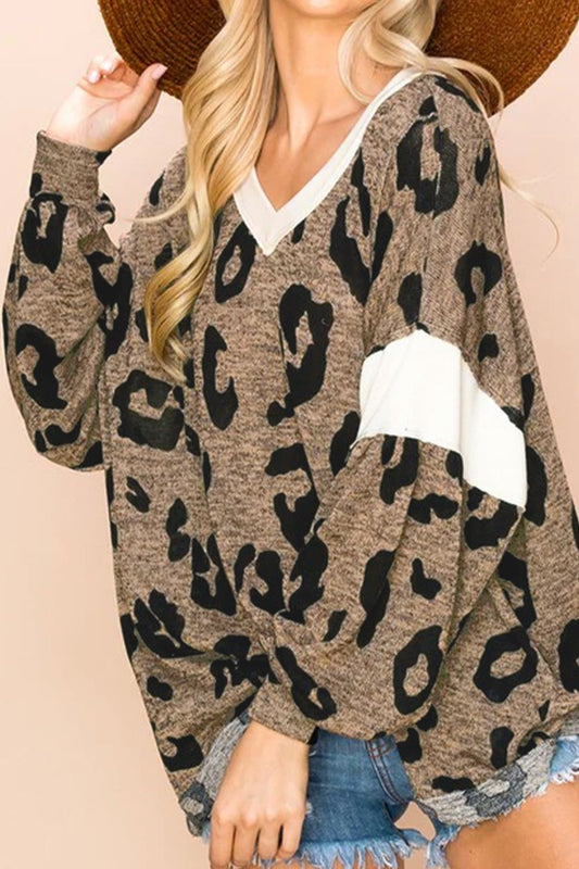 Regular price $40.23 USDRegular priceUnit price / per$40.23 USDSale price $40.23 USDLeopard V-Neck Dropped Shoulder Blouse