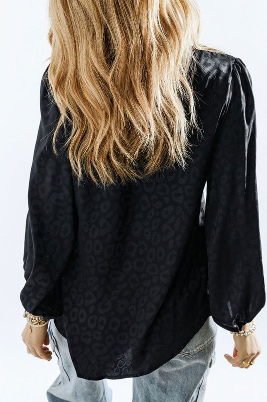 Regular price $32.28 USDRegular priceUnit price / per$32.28 USDSale price $32.28 USDLeopard Round Neck Balloon Sleeve Blouse