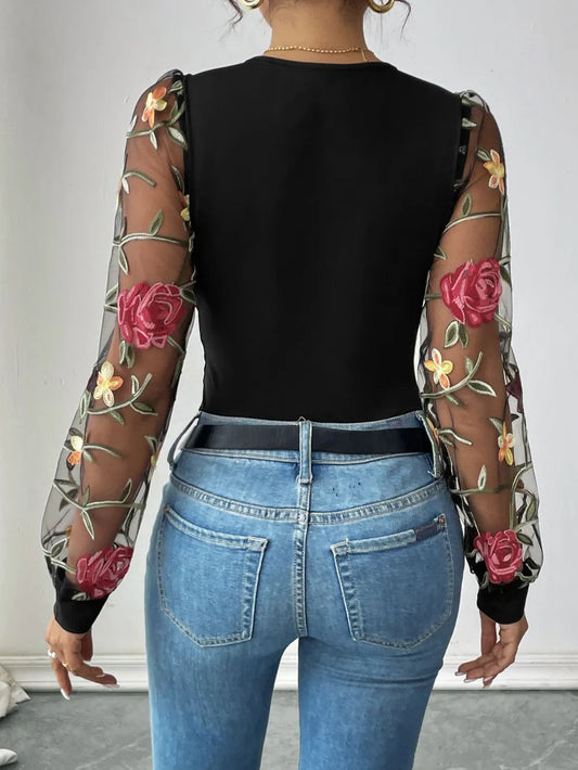 Flower Off-Shoulder Mesh Bodysuit