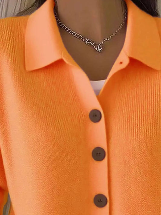 Solid Color Knit Button Drop Shoulder Sweater Cardigan