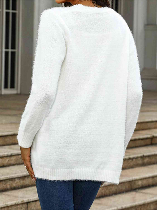 Button Up Drop Shoulder Long Sleeve Cardigan