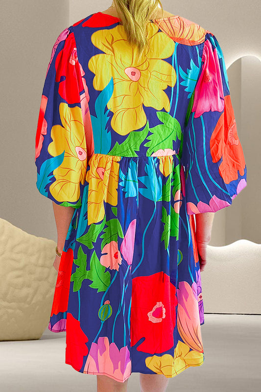 Regular price $41.64 USDRegular priceUnit price / perSale price $41.64 USDPrinted Tie Neck Half Sleeve Mini Dress