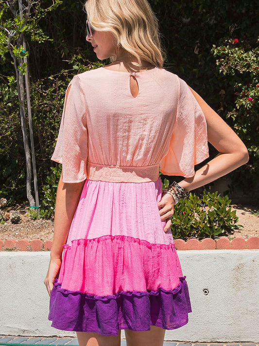 Regular price $53.64 USDRegular priceUnit price / per$53.64 USDSale price $53.64 USDV-Neck Flutter Sleeve Color Block Dress