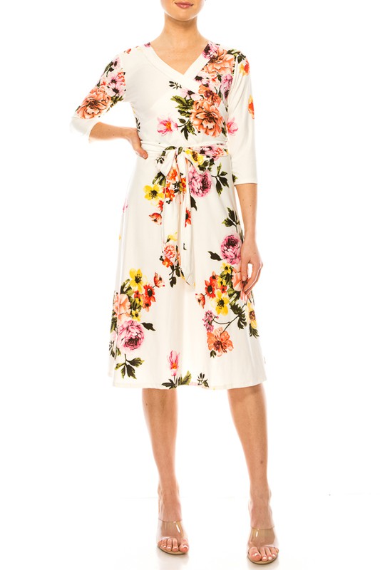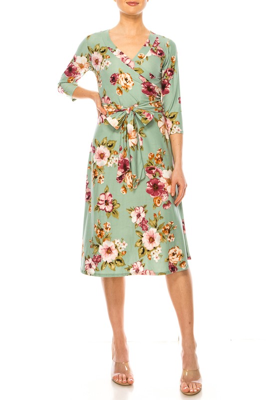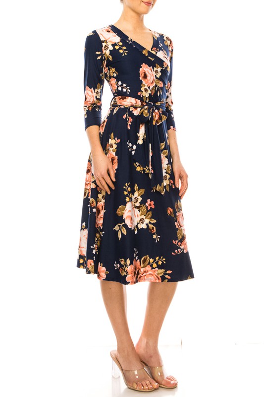Regular price $47.52 USDRegular priceUnit price / perSale price $47.52 USDFloral print, faux wrap dress with deep V-neck
