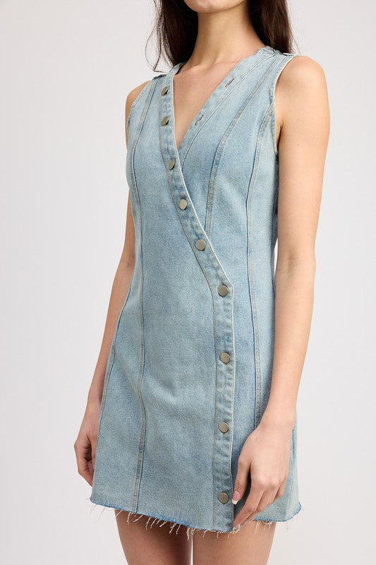 WRAPPED DENIM MINI DRESS