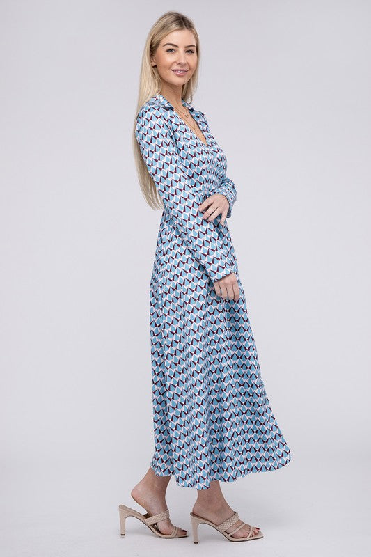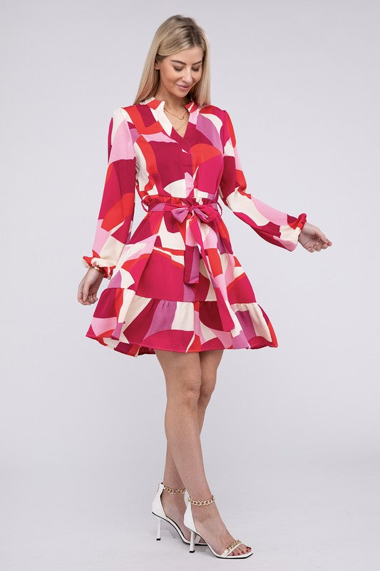 Geometric Print Wrap Dress