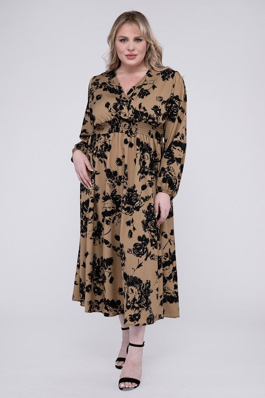Smocked High Waist Midi Dress