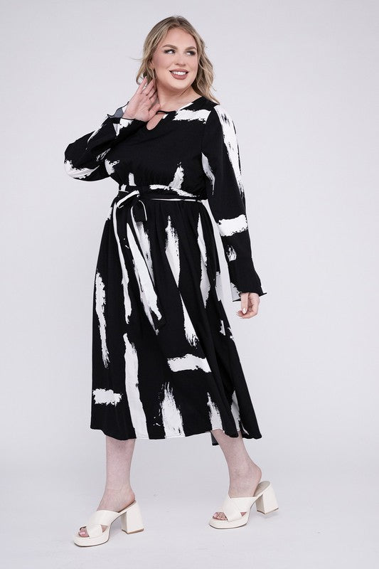 Keyhole Neck Belted Midi Dress