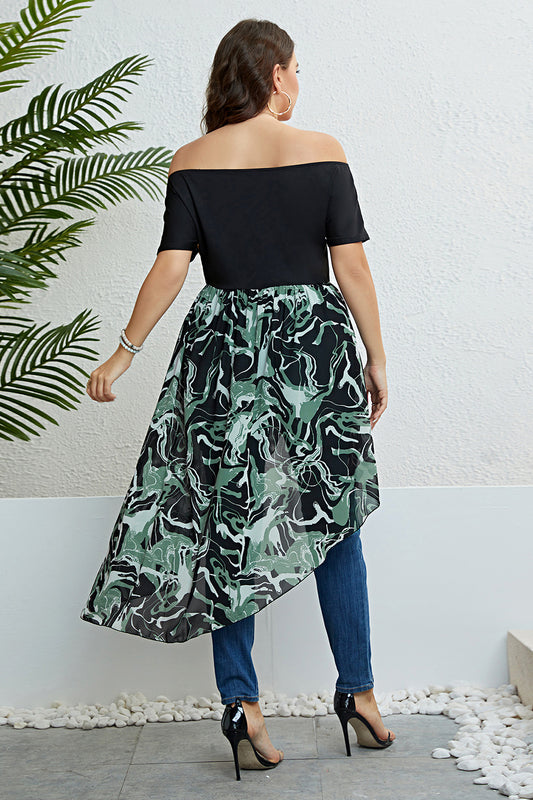 Plus Size Off-Shoulder Asymmetrical Hem Dress
