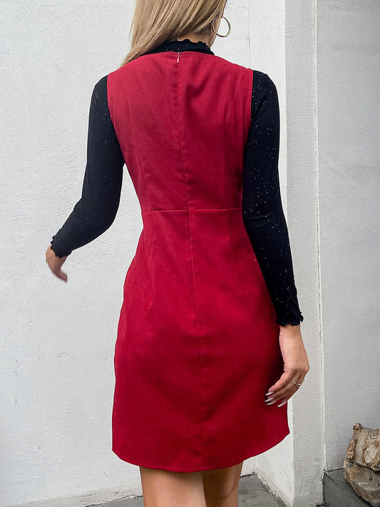 Honey Contrast V-Neck Sleeveless Mini Dress