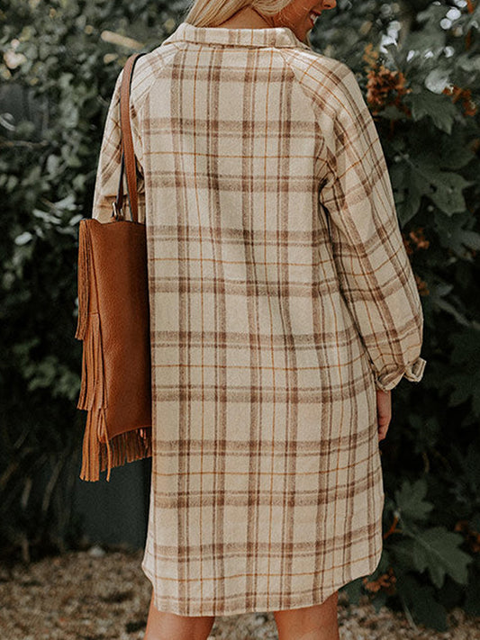 Plaid Collared Neck Long Sleeve Shirt Dress