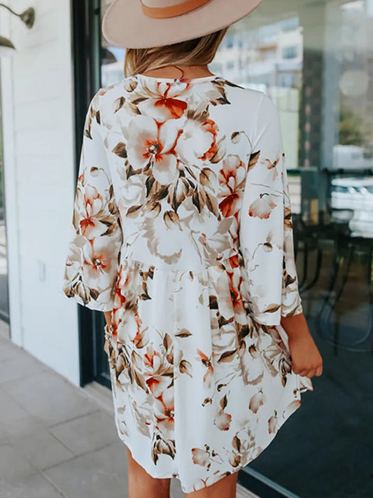 Regular price $41.34 USDRegular priceUnit price / per$41.34 USDSale price $41.34 USDFloral V-Neck Three-Quarter Sleeve Dress
