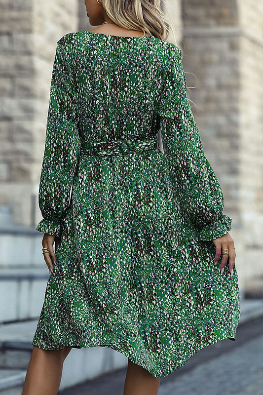 Regular price $42.63 USDRegular priceUnit price / per$42.63 USDSale price $42.63 USDPrinted Flounce Sleeve Surplice Neck Dress