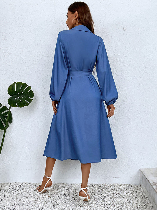 Regular price $49.71 USDRegular priceUnit price / per$49.71 USDSale price $49.71 USDButton-Down Tie Waist Collared Neck Dress