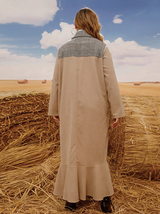 Full Size Two-Tone Ruffle Hem Longline Coat with Pockets