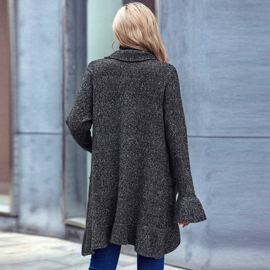 Regular price $93.69 USDRegular priceUnit price / per$93.69 USDSale price $93.69 USDFull Size Two-Tone Ruffle Hem Longline Coat with Pockets