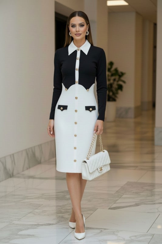 Contrast Scallop Panel Bandage Midi Dress