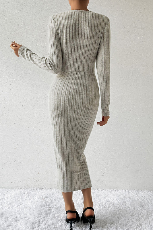 Ribbed Surplice Long Sleeve Midi Dress
