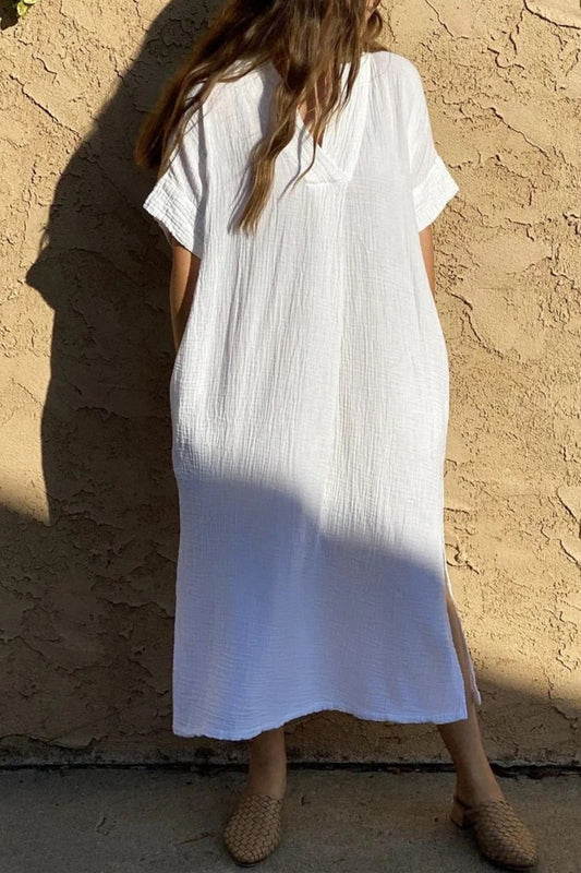 Slit Textured Short Sleeve Cover-Up Dress