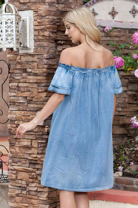 Regular price $71.91 USDRegular priceUnit price / perSale price $71.91 USDOff-Shoulder Knee-Length Denim Dress