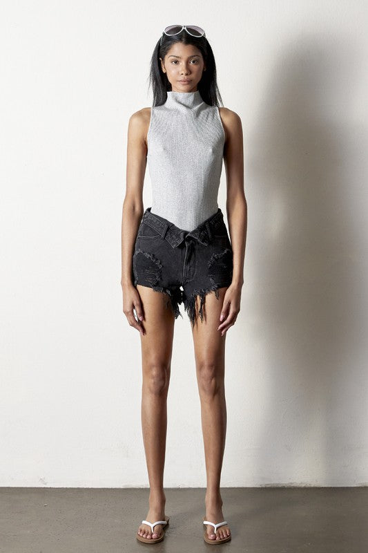 RISEN Full Size High Rise Distressed Detail Denim Shorts