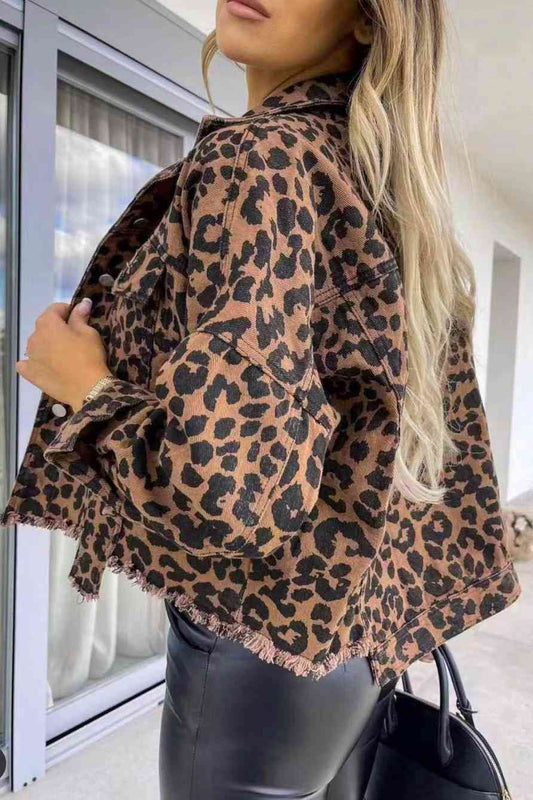 Regular price $61.74 USDRegular priceUnit price / perSale price $61.74 USDLeopard Raw Hem Denim Jacket