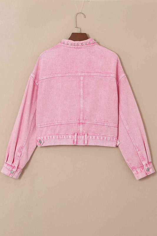 Regular price $102.93 USDRegular priceUnit price / perSale price $102.93 USDStudded Collared Neck Denim Jacket with Pockets