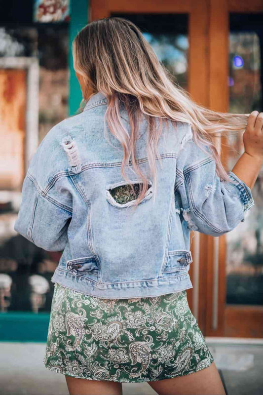 Regular price $106.05 USDRegular priceUnit price / perSale price $106.05 USDAcid Wash Distressed Denim Jacket