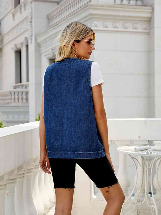 Regular price $61.62 USDRegular priceUnit price / perSale price $61.62 USDButton Front Sleeveless Denim Jacket