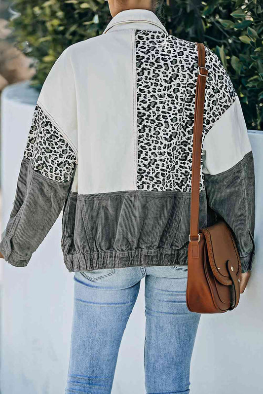 Regular price $92.85 USDRegular priceUnit price / perSale price $92.85 USDLeopard Color Block Button-Up Corduroy Shacket