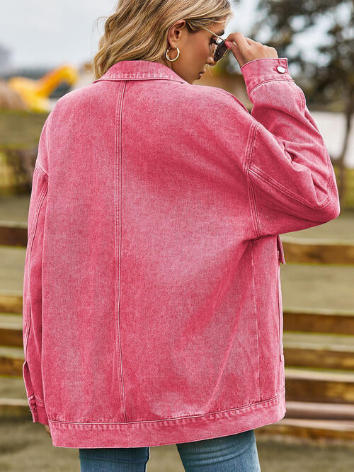 Cropped Collared Neck Dropped Shoulder Denim Jacket