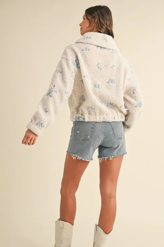 MABLE Floral Embroidered Fleece Teddy Jacket