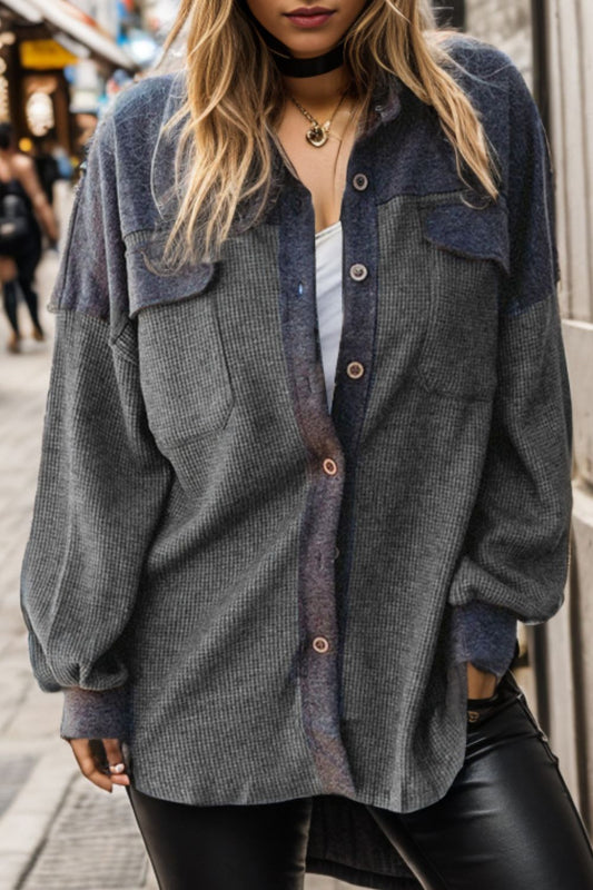 Pocketed Button Up Dropped Shoulder Shacket
