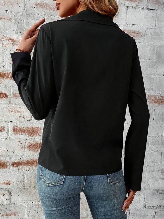 Zip Up Collared Neck Roll-Tab Sleeve Jacket