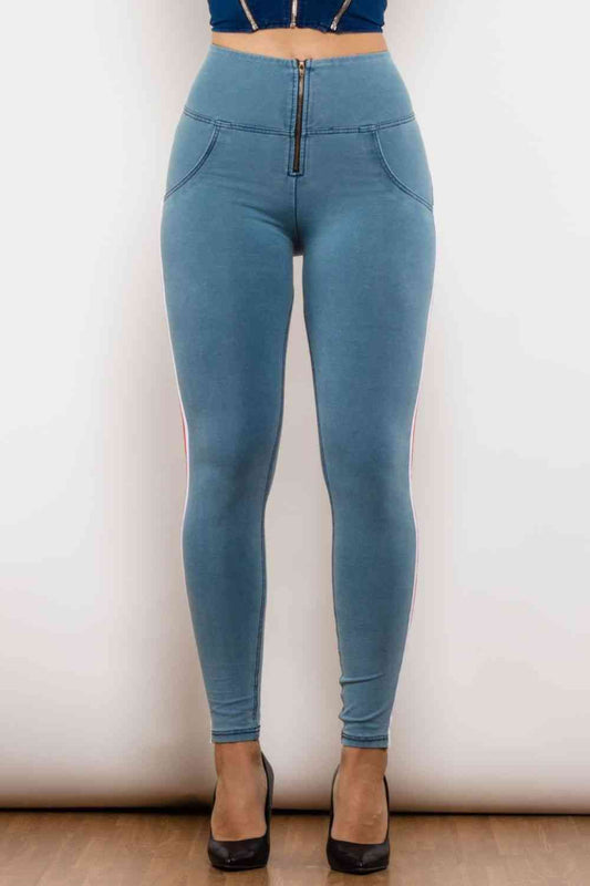 Side Stripe Contrast Zip Closure Skinny Jeans