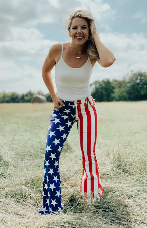 Women's New Independence Day Flag Print Women's Flared Jeans