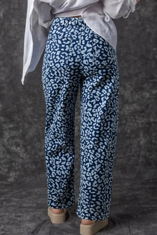 Leopard Print Wide Leg Jeans