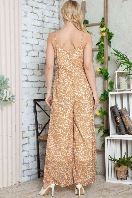 Full Size Printed V-Neck Sleeveless Jumpsuit