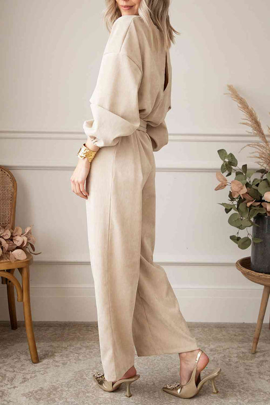 V-Neck Tie Waist Wide Leg Jumpsuit